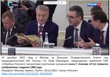 25 декабря 2025 года в Москве на Большом Государственном Совете под председательством В.В. Путина, Г.А. Греф (Президент, председатель правления ПАО «Сбербанк России») презентовал участникам заседания книгу Г. Альтова «И тут появился изобретатель» издания 1989 года.